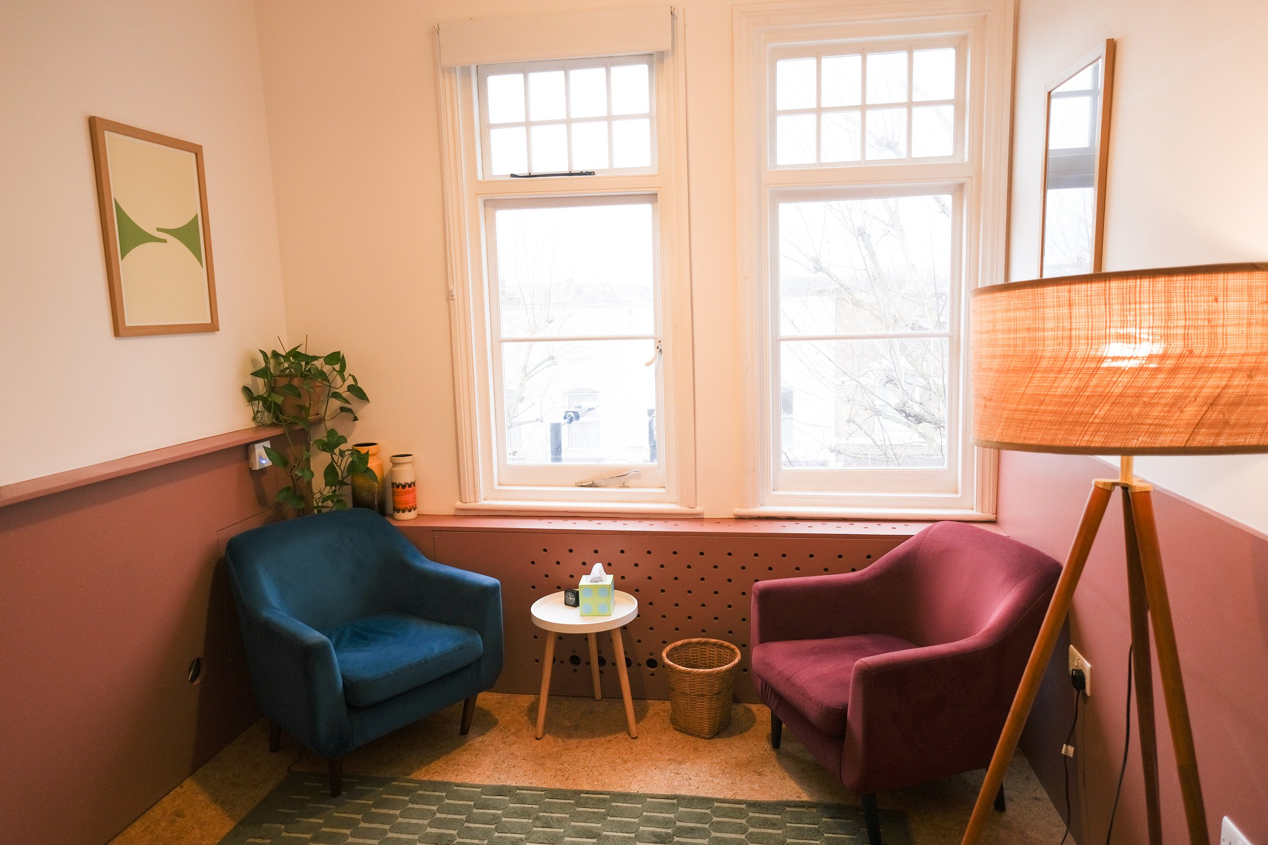 Our therapy room at Oru Space, East Dulwich, offers a calm, confidential environment where you can safely pause and reflect.